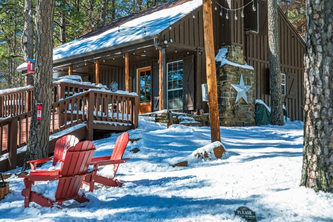 Take it easy at this unique and tranquil getaway. Situated only 1.9 driving miles from Robbers Cave State Park's main entrance, this location offers convenience, quiet and seclusion, perfect for a romantic getaway or family of 4. This property also adjoins Robbers Cave State Park ATV Trails, so you can launch your ATV from this cabin to access the nearby trails. Inside this cabin is luxury decor and outdoors provides a large deck, hot tub, TV, gas fireplace, gas grill, fire pit, and more.