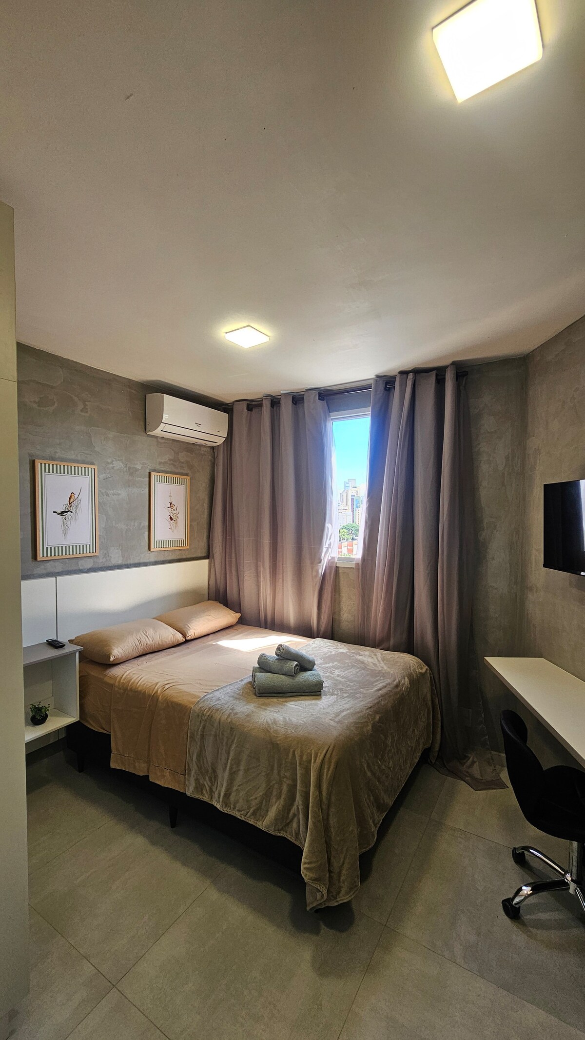 Desfrute de uma vista incrível para o Memorial da América Latina. Studio moderno e bem equipado em prédio novo com academia, espaço gourmet, lavanderia, mini market e rooftop com chuveirão e espelho dágua para se refrescar. Ideal para estadias curtas ou longas, com Wi-Fi 600mbs, Smart TV, ar-condicionado, cozinha completa (airfryer, cafeteira, micro-ondas) e espaço confortável para home office. Inclui enxoval completo. Apenas 5 minutos da Estação Barra Funda e 10 minutos do Allianz Parque.