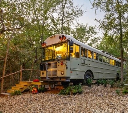 Experience a Memorable “Field Trip” in this Unique School Bus!! Bus sits on 12 Acre Property that backs up to Cedar Creek. Bus is Fully Loaded: •Fully Stocked Gourmet Kitchen •Living Room Couch Pulls out to a Queen-Sized Bed + Smart TV •Full Bathroom w/ Bidet •Bedroom has Cozy Queen-Sized Bed + Work Space+Smart TV & 25+Classic DVD Movies! •Deck w/ Fire Pit 10 min to Bastrop 30 min to Austin 20 min to COTA 10 min to Boring Company 25 min to Bergstrom Airport (ABIA)