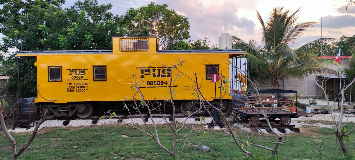 在墨西哥田园地带的火车车厢中住宿