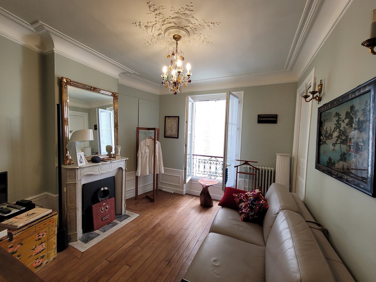 Welcome to my 50m2 flat where I live and work as a photographer (no ill smelling painting brushes!) at the 5th floor with lift in the 20th arrondissement, 50m from the amazing Belleville park. Fully equiped kitchen, Bathtub, Wifi. Let the ladder lead you to accessing the cosy, under-the-roof mezzanine with a very comfy double bed.