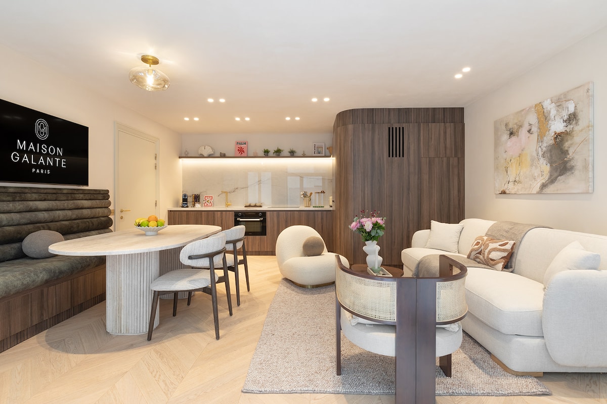 Discover our chic 2‑bedroom apartment in the heart of the Marais, on Rue des Rosiers. Modern and air‑conditioned, it accommodates up to 6 guests with its cozy living room, spacious dining area, and fully equipped kitchen. Just steps from museums, restaurants, and iconic boutiques, it perfectly combines Parisian charm with modern comfort for an unforgettable stay. Your ideal Parisian getaway awaits!