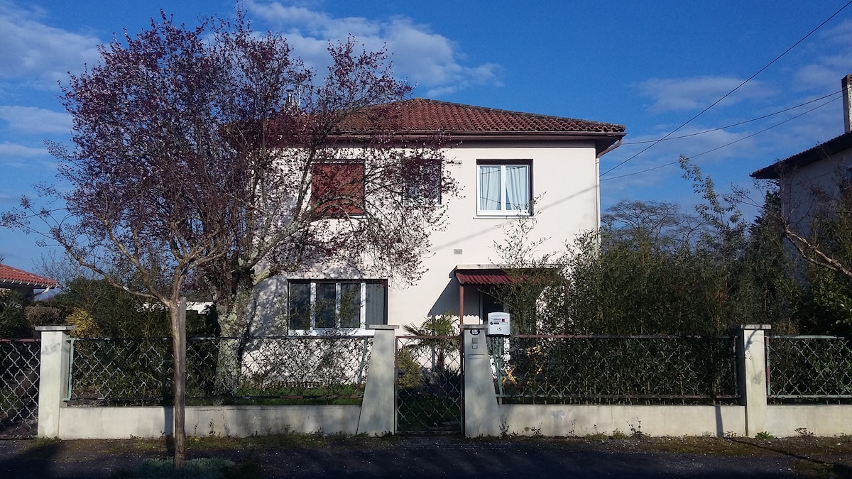 Au coeur d'un quartier calme , résidentiel , nous vous accueillons dans un gite "L'Echappée", entièrement rénovée, est une partie indépendante de notre maison ( Clim et Wifi ) idéal pour se ressourcer. piscine (10m x 3m) de mai à septembre; horaires ( 9h/13h 16h/19h ) Proche de Bx, au Bouscat ( quartier de la Chêneraie ) 400 m Tram D sur la route des plages et du Medoc Il est possible de recharger sa voiture électrique pour un coût forfaitaire de 8€ par jour