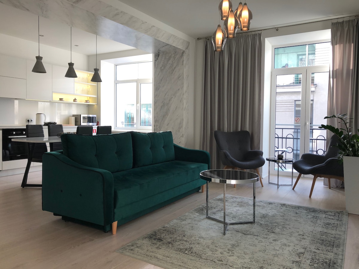 Kick back and relax in this calm, neat space in the city heart, next to Art Nouveau gems and surrounded with parks, top restaurants, bars of any kind and shopping centers - you will get all needed for vacation or staying for business. Apartments were built in April 2023 with high quality materials and wise design. Owner constantly invests her own soul in highest level of clearness, comfort and safety. Fully contactless checkin & free parking in nearest commercial parking will be a small bonus.