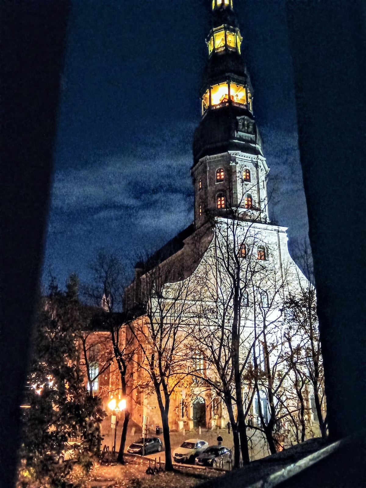 Spacious studio in a legendary historic building, next to the City Hall and the House of Blackheads. Super convenient for getting to and from Airport or International Coach Terminal. It's a quiet residential area, where windows are oriented toward stunning view of St. Peter's cathedral and beautifully old oaks, shining in the morning sun and acquiring a fresh air from the green and quiet square. Downstairs is a Latvian cuisine and free parking (ask for permit)