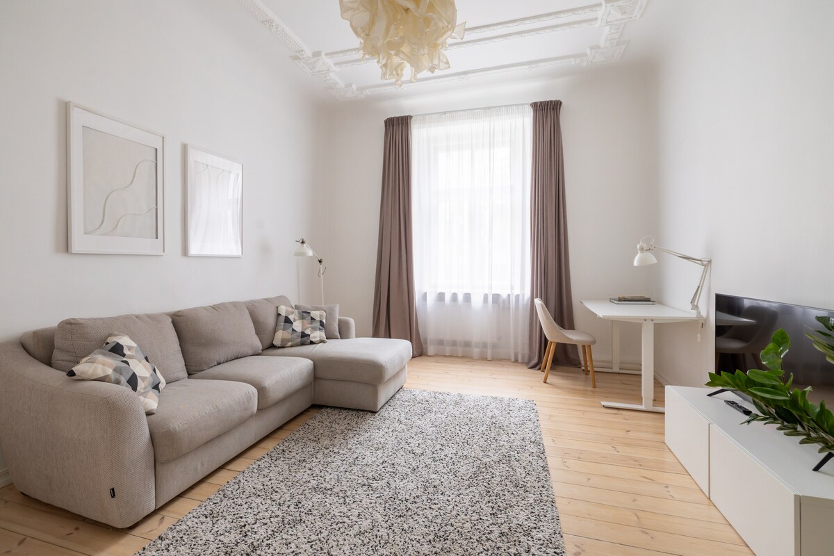 Experience modern comfort in this fully furnished and well-equipped apartment, situated in a historic Art Nouveau building designed by renowned Latvian architect Eizens Laube in 1909. Recently renovated, the apartment offers stunning city views from the living room and peaceful courtyard views from the bedroom. Perfectly located in the heart of the city, you'll be just a 15-minute walk from Old Town and Central Station. A nearby food store is only a 5-minute walk away.