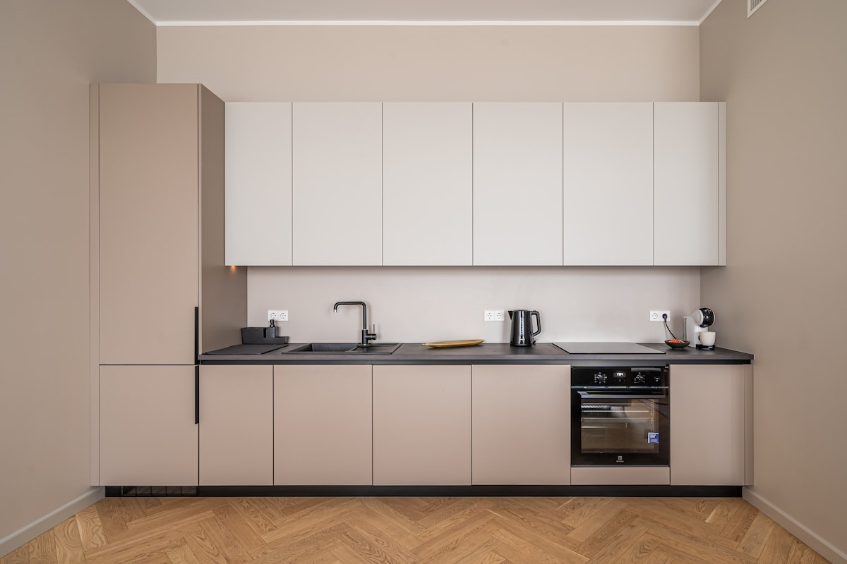 This is a modern 1-bedroom apartment located in Riga's prestigious Art Nouveau district also known as the Quiet Center. Walking distance to most tourist attractions and in close proximity to some of the best best bars and restaurants the city has to offer. The apartment has you covered for the perfect getaway. The quiet courtyard building and comfy double size bed will hopefully give you a great sleeping experience. Ideal for a couple or a solo traveler. Welcome! :)