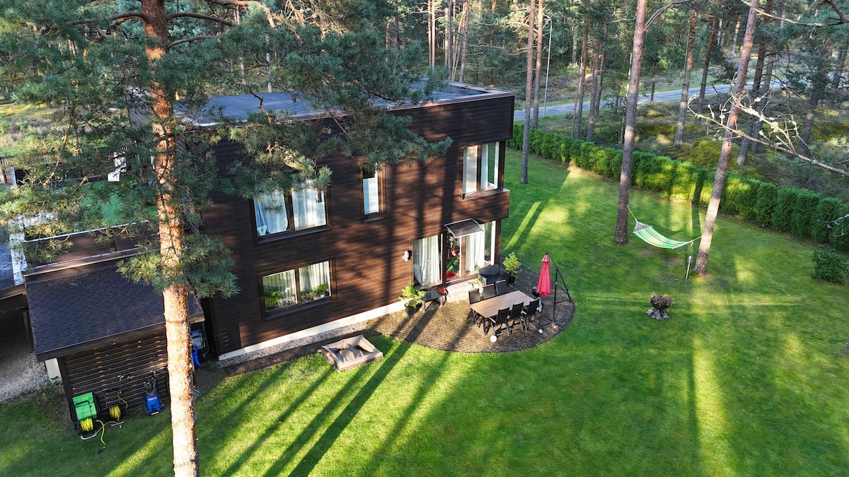 This unique place is located 10min from beach. Surrounded by pine trees, fresh air and peace. 2min walking distance from train that comes straight from central station in 15min. Apartment is two floors. Second floor bedroom area. Low ceilings Large kitchen to enjoy home made meal. All possible necessities in neighborhood. Relax with the whole family at this peaceful place to stay.
