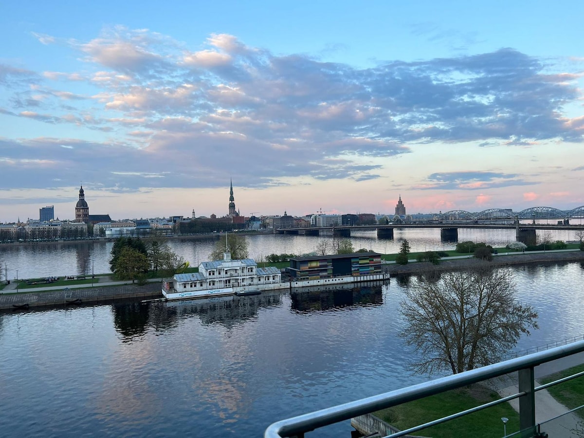 可欣赏道加瓦河和老城区景观的顶层公寓