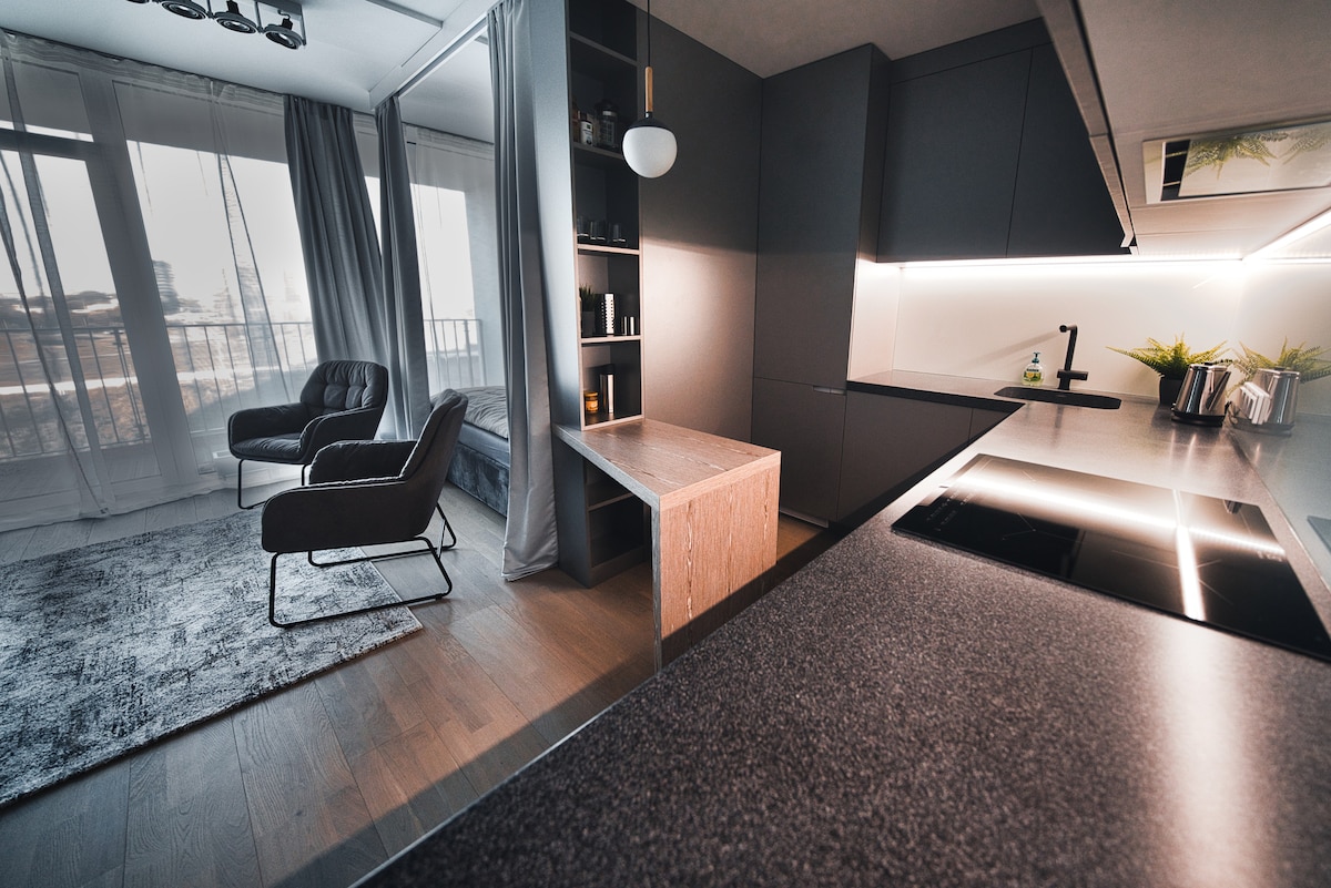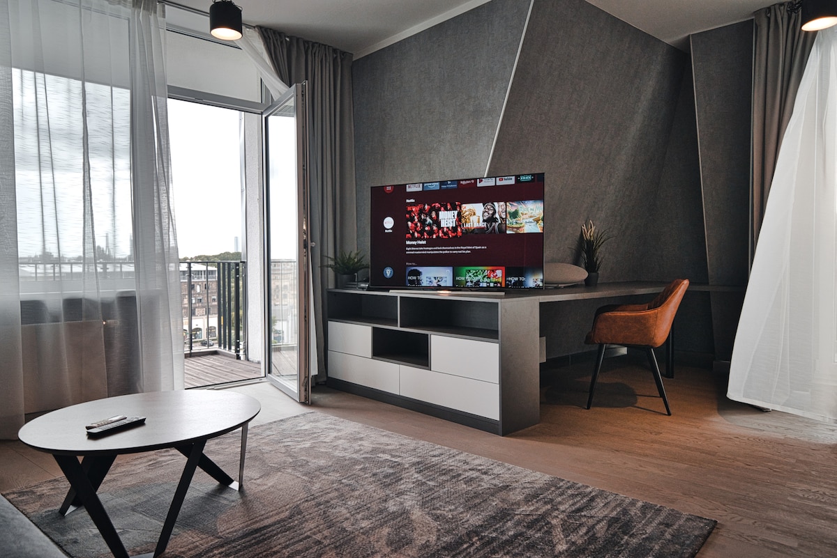 Prepare yourself for pure luxury - the newly renovated apartment in the heart of town has everything you need for your trip to be comfortable - a 55 inch OLED 4K TV, latest Generation Apple TV, air conditioning, a washing machine & a dishwasher, free secured parking, a Gym and a lot more... Parquet floor and quality furniture look and feel great, and over 140 cameras all around the housing complex make sure you can feel safe - 24/7 Come inside, I will be glad to be your host...
