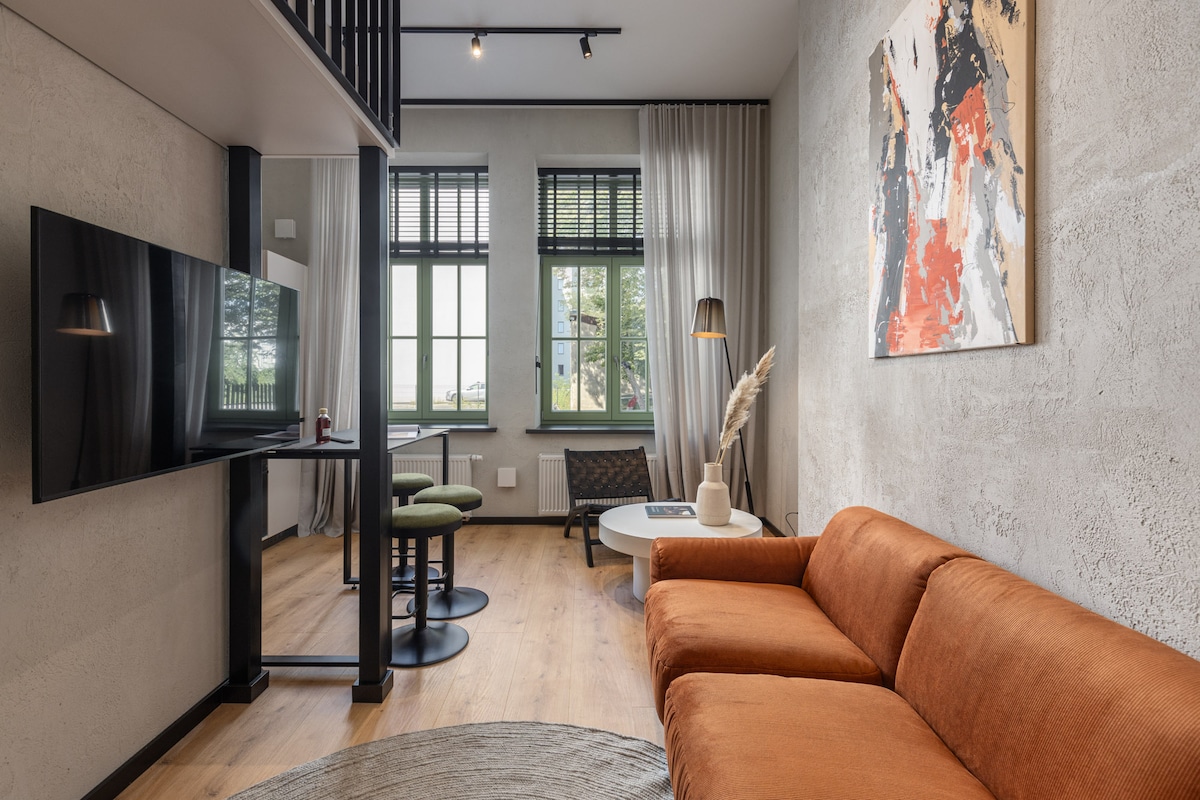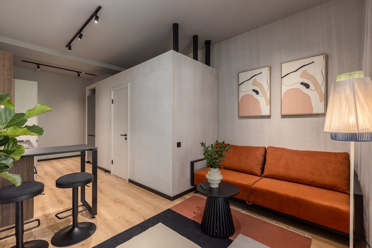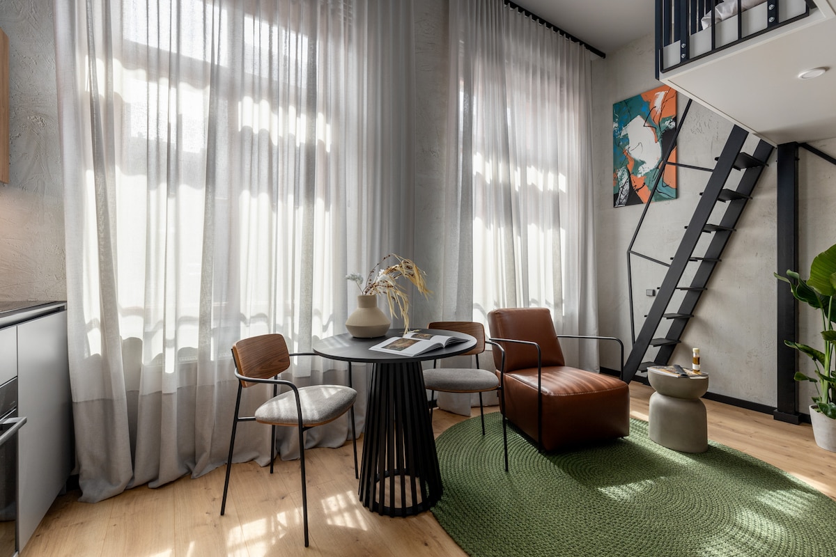 Welcome to Hallo Loft! Discover our sophisticated apartment with a glass-walled bedroom in the heart of Riga. Featuring a sleek design with modern furnishings and stylish accents, this space includes a fully equipped kitchen, a cozy bedroom, a modern bathroom, and a comfortable living area with views of Krisjana Barona Street. Located in the vibrant city center, you’ll be just steps away from cafes, restaurants, shops, and gyms. Experience modern comfort and convenience at Hallo Loft!