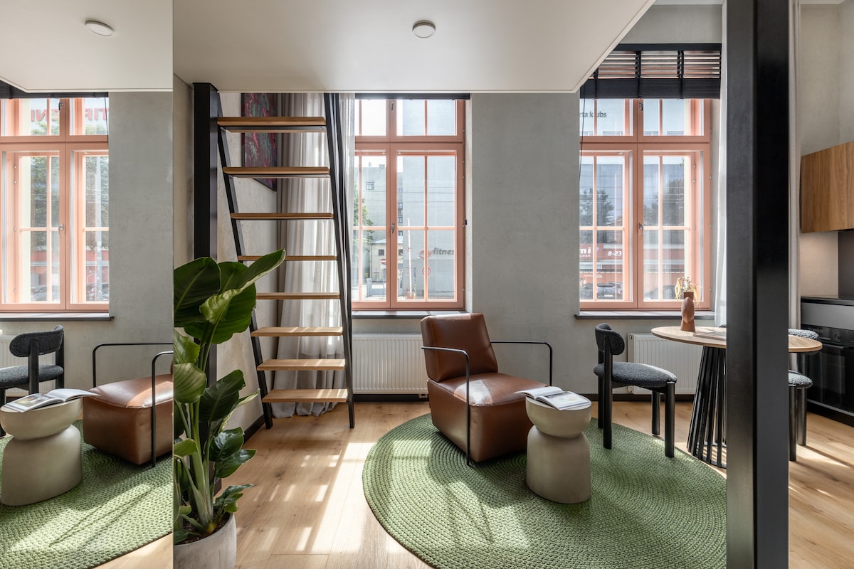 Escape to a unique loft in Riga's prestigious Art Nouveau 'Bibliotēkas nams.' This quiet 45 m² sanctuary for two features a balcony overlooking a peaceful courtyard, yet is steps from Elizabetes Street's vibrant life. Renovated with a bio-fireplace, full kitchen, and a cozy mezzanine bedroom, it's your perfect base for exploring the city. Walk to Old Town and the National Opera in minutes.