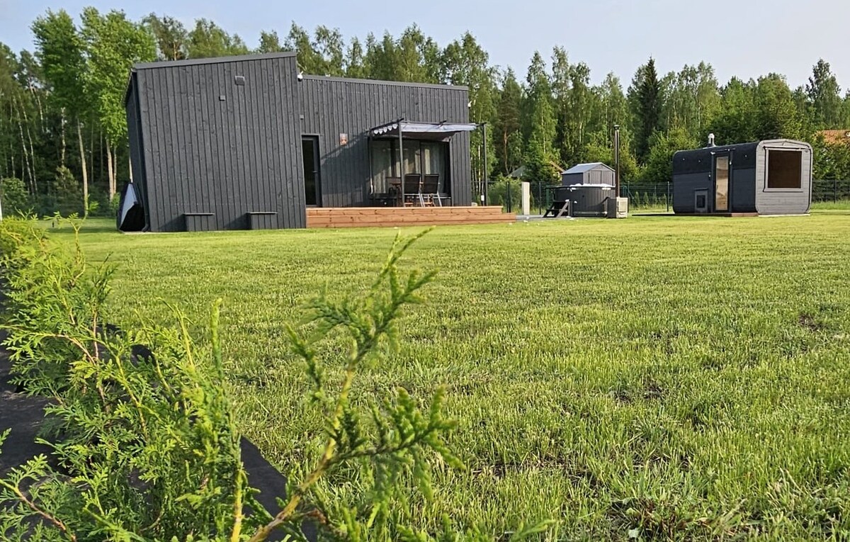 You will be able to enjoy nature, meet forest birds and animals. You’ll have a luxury cabin house which are build inside sea container. You will be staying in a cabin with a beautiful view. The space: - shampoo, conditioner, soap - towels - bed linen, blankets, tons of pillows - tea, coffe, salt, vegetable oil etc. - hot tub - sauna Guest access: Check in:15:00 Check out: 12:00. Extra charge services: camping site, ATV , sauna, hot tub Located 4 km from Limbaźi city, 77 km from Riga