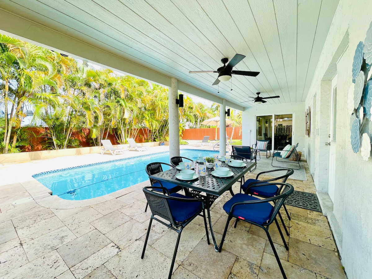 Step outside to our quiet, lush and private backyard surrounded by palm trees. Lounge by the pool, soak up the Florida sun, or simply enjoy the tropical atmosphere. You're just under 2 miles from the stunning beach. Explore the white sands and crystal-clear waters. Plus, you're conveniently located near a variety of fantastic restaurants for dining out. • Fort Lauderdale-Hollywood Int'l Airport 18-min drive • Las Olas Blvd - Downtown Fort Lauderdale 19-min drive • Miami Beach 44-min drive