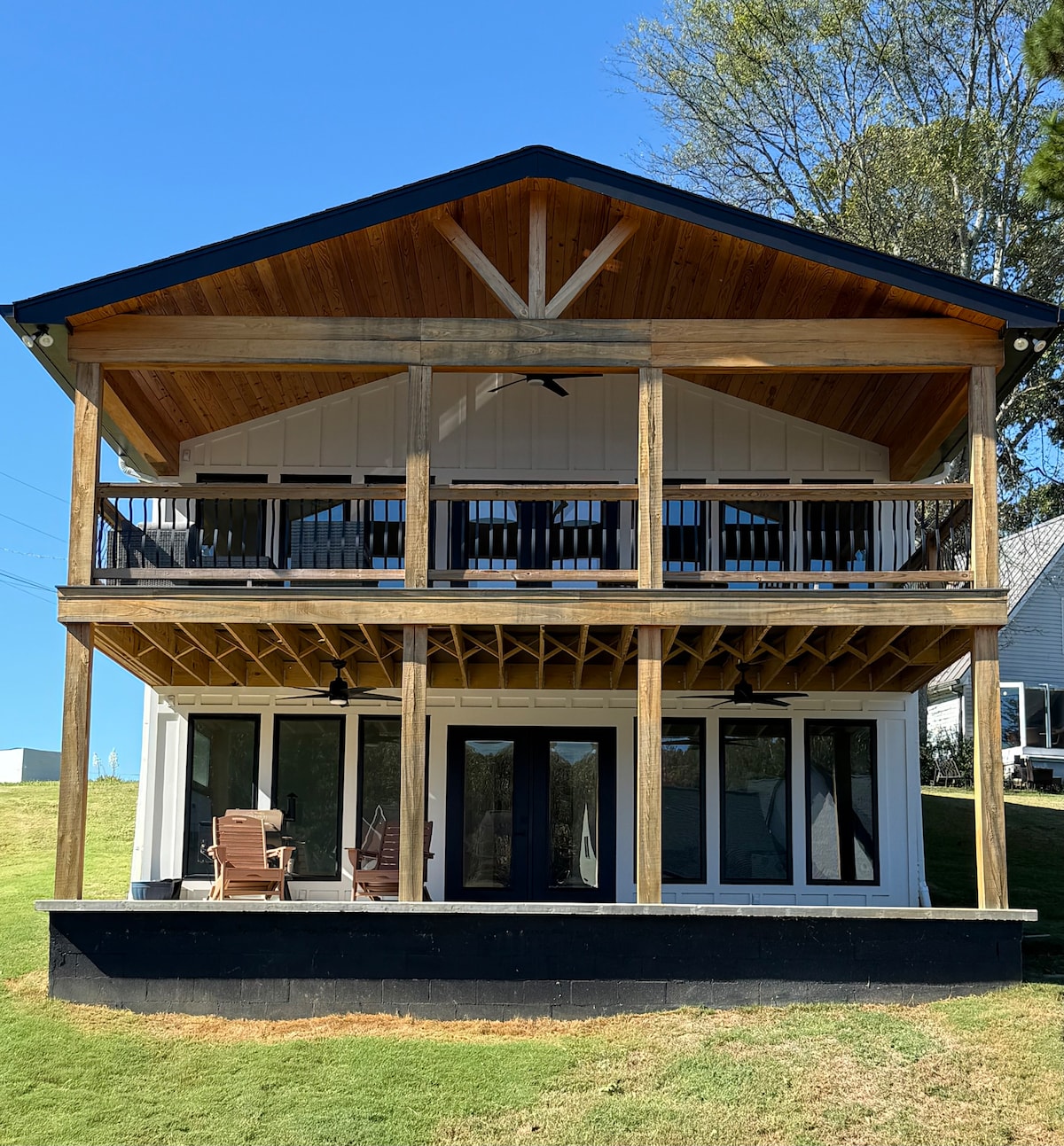 Be one of the first guests to enjoy a beautiful new, 2 level dock with a slip to store your boat; New dock coming Spring 2026!! Step inside this beautiful modern home complete with an open floorplan and vaulted ceilings. This 5 bed/3.5 bath home has space for you to spread out and relax while enjoying views of the TN River from every room. Upon entering, you'll immediately see the beautiful deep waters of Wilson Lake through the expansive sliding glass doors and large kitchen windows.