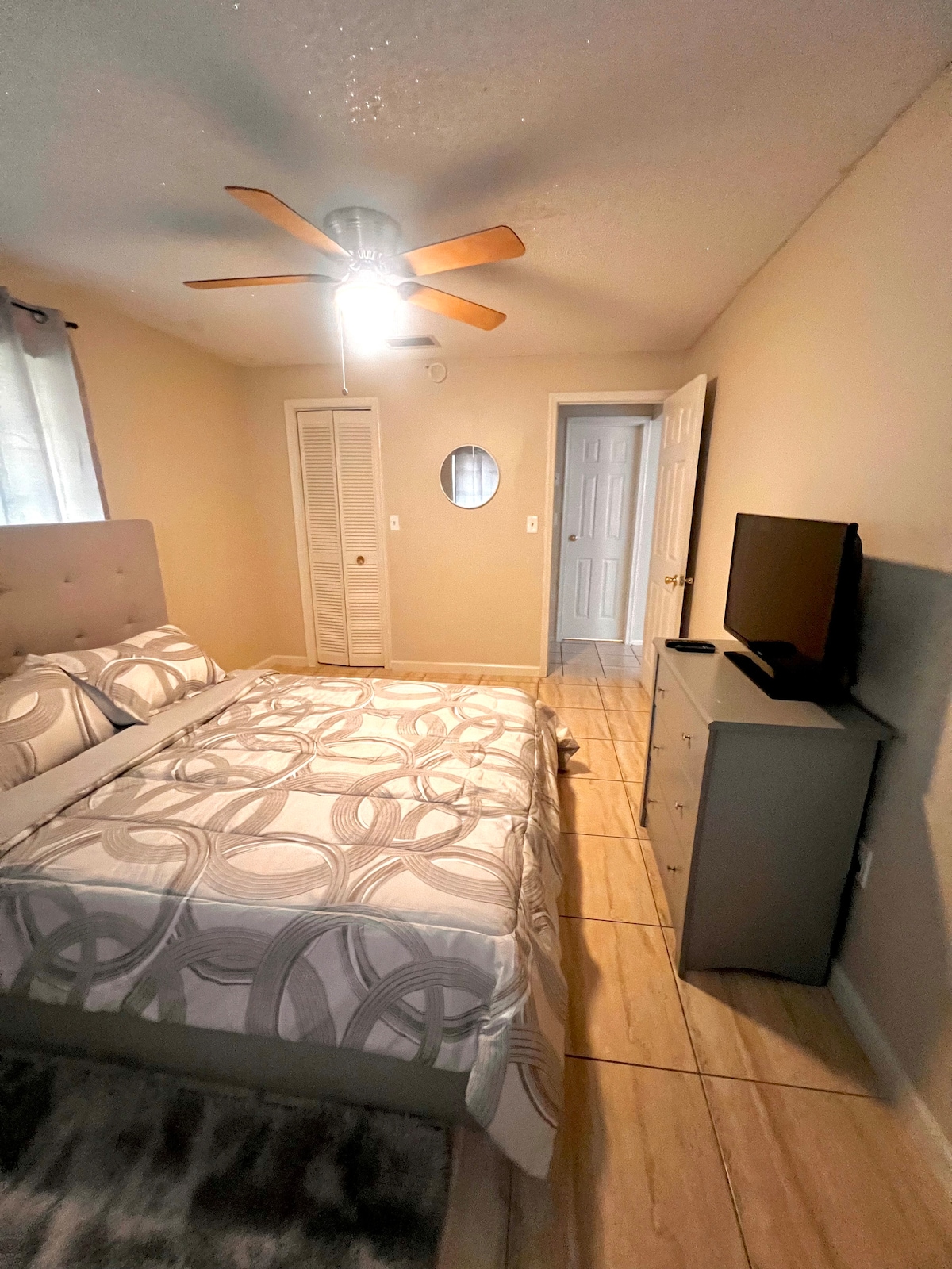 Welcome to our charming private suite nestled in a peaceful neighborhood, perfect for travelers seeking a cozy retreat. This tastefully decorated space offers a comfortable King-sized bed, a fully equipped kitchen, and a clean, modern bathroom. Guests will love relaxing in the inviting living area, complete with a smart TV and high-speed Wi-Fi. The Apartment suite also boasts a private entrance and ample natural light, creating a warm and inviting atmosphere.