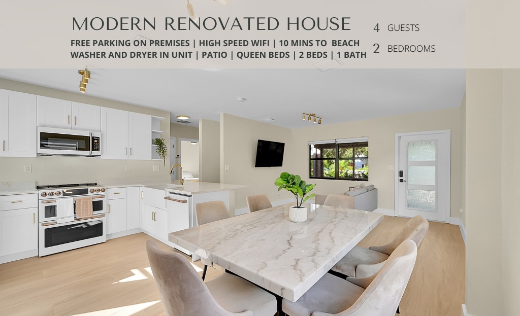 Welcome to our happy place! This single family home lies in a beautiful and peaceful neighborhood surrounded by parks, nature, and a nearby river. Enjoy free parking, fast WiFi, smart 4K TVs, a large yard, a fire pit, outdoor dining area and a fully equipped kitchen and comfort for up to four guests. The home is just 5-10 minutes away driving from local activities, restaurants, Wilton Manors, Downtown / Las Olas, and Fort Lauderdale Beach.