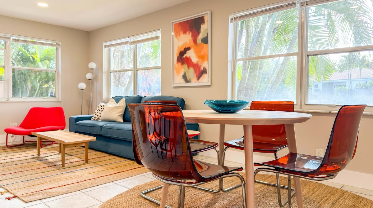 Airbnb's #1 Wishlisted property in Broward! Our cozy Studio apartment offers fullsize stocked kitchen & bath & lots of extras! Private entrances front & back. Tropical Pool area (shared) w/resort feel just out the backdoor. Close to beaches, airport, port etc. Fits 2 with comfy queen bed. Walk to great restaurants & BBQ available for $5. Experienced onsite SuperHosts with over 12+ yrs of experience & 2800+ reviews.Come join us at our Airbnb compound! Studio is on the right of aerial photo.