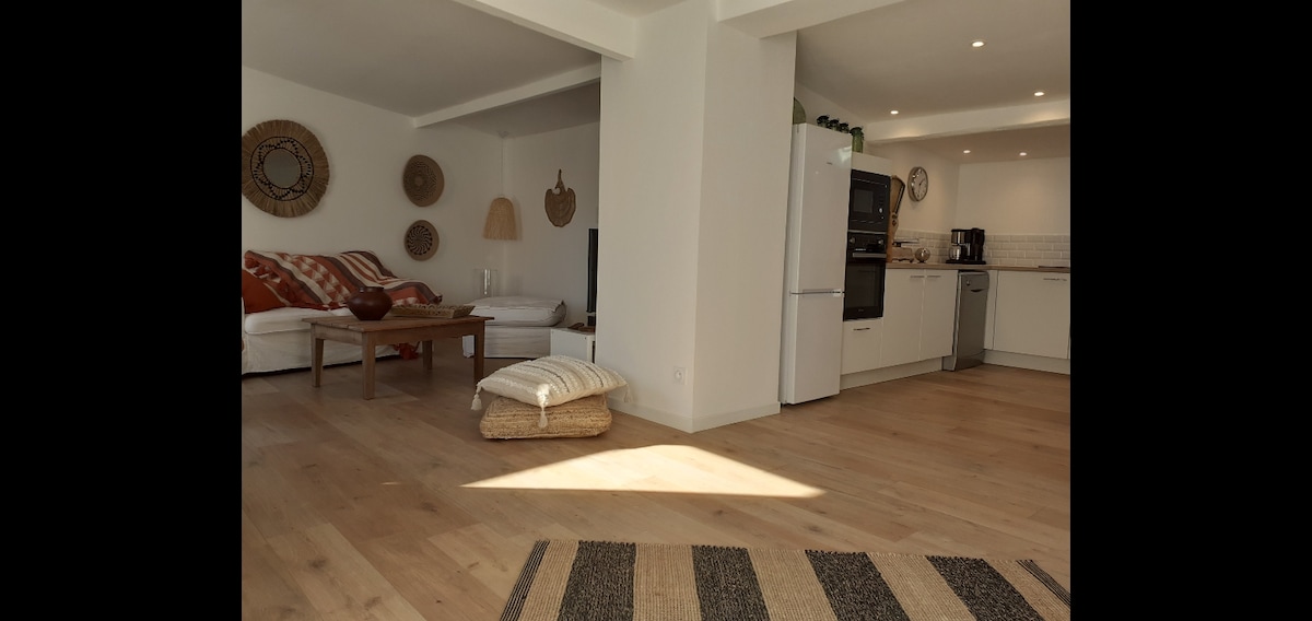 Appartement privé entièrement rénové de 45m2 dans une maison de village du 17° siècle. Havre de paix au cœur d'un magnifique village de Provence. Logement idéal comme base de départ pour toutes les offres de visites touristiques que propose cette région. Vous pourrez déguster un bon côte du Rhône des caves de Vénéjan sur une petite terrasse privée disposant d'un barbecue pour vos grillades. Possibilité de petit déjeuner sur réservation. Canapé convertible pour +2 voyageurs supplémentaires 10€/P