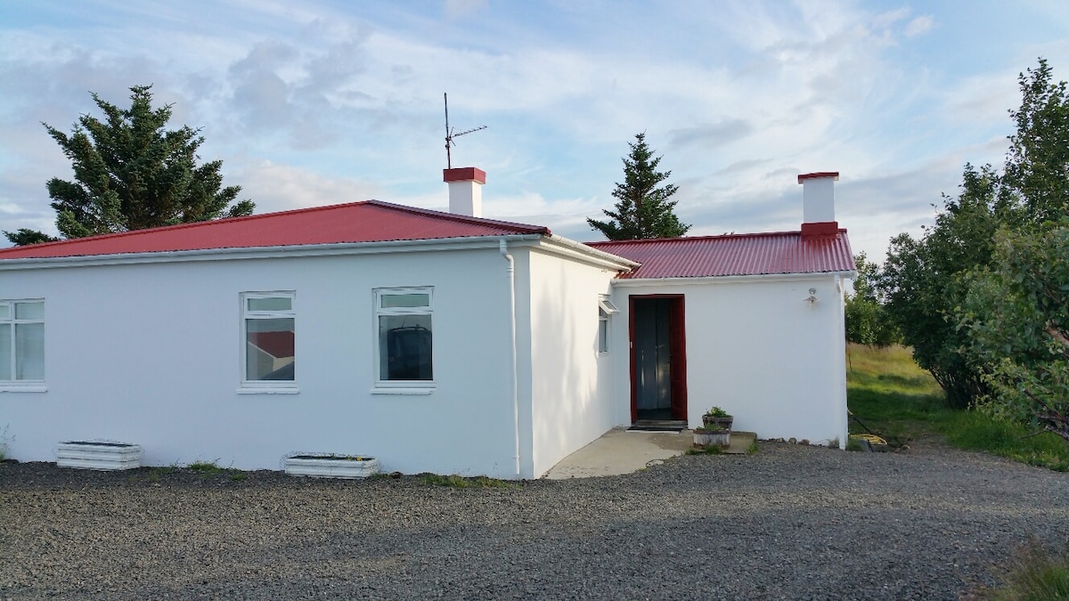This getaway is very unique and secluded. It has spectacular panorama mountain view over two of Iceland's most famous volcanos and fantastic northern lights sightings. The house is cozy with lots of windows for enjoying the view. Sleeping space for 4 people, a comfortable full size bed and a luxury sofa bed. This place has a lot of character and Icelandic artwork on the walls also powerful wi-fi and a smart tv. Private washing room with washer and dryer.