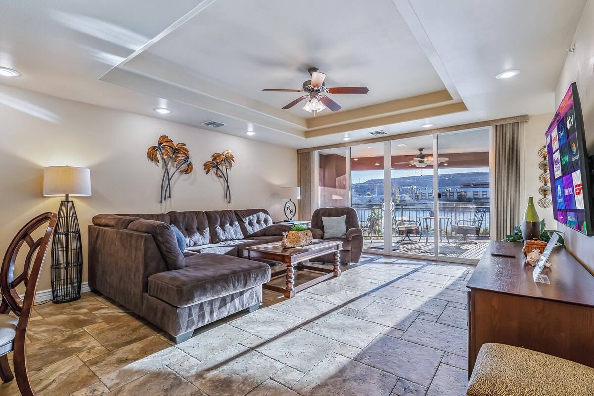 BREATHTAKING RIVERFRONT CONDO ON THE COLORADO RIVER -- Fully Furnished Condo in Gated Water Front Community! Short or Long Term – You will be at instant peace when you see this beautiful condo in the exclusive Lower level unit that features 2 bedrooms and 2 bathrooms, with sofa bed (up to 8 guests), includes a 50-foot deep garage perfect for a boat/watercraft, and a gorgeous view of the private marina. This condo can either be leased as a seasonal/vacation rental unit, or a long-term rental.