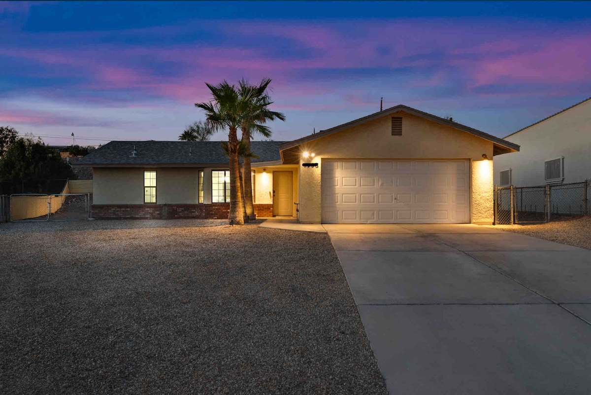 This Great River Home is situated one row back from the River, in the upscale Palo Verde Neighborhood. Our Neighborhood has a private Boat Ramp & Private Beach (Great for kids) . Neighborhood is very quiet and family friendly. Just 15 min from Lake Mohave, 5 min to Rotary Park , and close to the airport, and everything else Bullhead City/Laughlin area has to offer. House comes fully furnished with 3 Big Screen Smart Tv's ready for enjoyment!