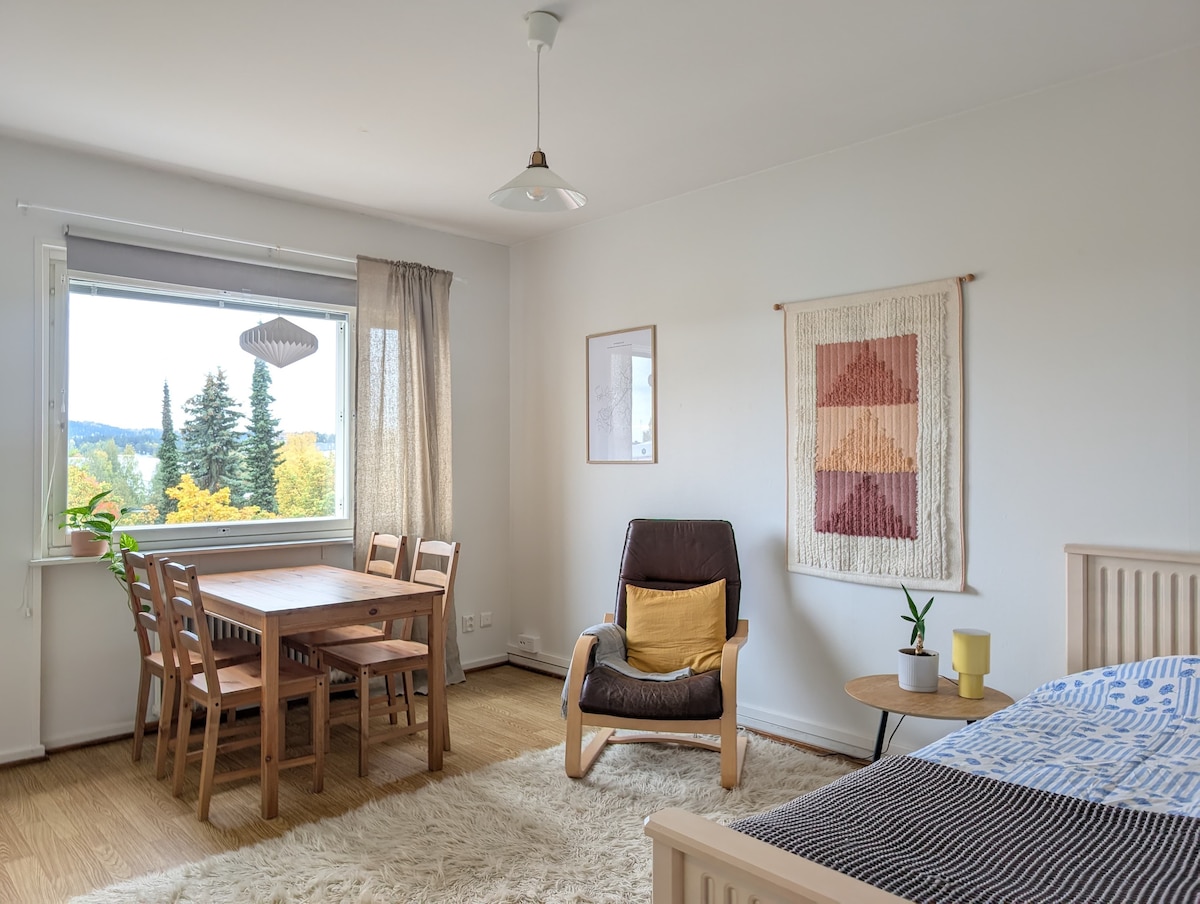 Uusi hyvin varusteltu huoneisto järvinäköalalla Lutakon aukion vieressä. Kaupunkikoti järven läheisyydessä Sinulle! Liikennekeskukseen ja keskustaan on vain 5 minuutin kävely. Hyvälaatuiset sängyt löytyy 3 vieraalle. Kysy aikaisen varaajan etuna ILMAISTA parkkipaikkaa. Lisäksi parkkihalli sijaitsee talon lähellä. (P-Paviljonki 1, 16€/vrk). Talon pääovelle johtaa C portaat. Pyrin tulemaan henkilökohtaisesti tervehtimään sinua! Varaa majoitus pian niin sovitaan sisäänkirjautumisaika.