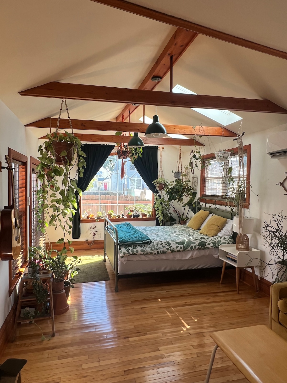 A modern, but cozy, 562-sq.-ft. loft apartment with full kitchen and bath, queen bed (with a Winkbeds Luxury Firm mattress)a twin Murphy Bed / desk, living room, walk-in closet, FireStick, Roku, DVD player, WiFi and more. Note that the barn is in our back yard and part of our home, so we don't allow instant book. We know it's a bit of a pain, but hope everyone will understand given that we live here too.