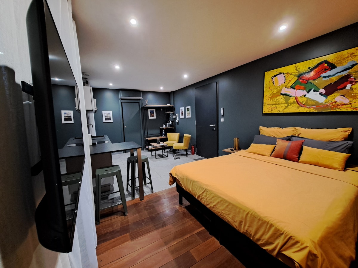 Installez vous dans ce studio cosy et au calme qui n'attend que vous ! Il a été aménagé et rénové essentiellement pour le confort et le bien-être des voyageurs. Lumineux, pratique, il dispose d'un espace de vie avec grande TV, une connection internet ultra rapide ainsi qu'une cuisine parfaitement équipée. Salle de bain toujours propre et soignée, terrasse avec jardin, barbecue, parasol et la piscine en été ! Residence privée et sécurisée + place de parking - Metro 500 M / Centre ville 10 min