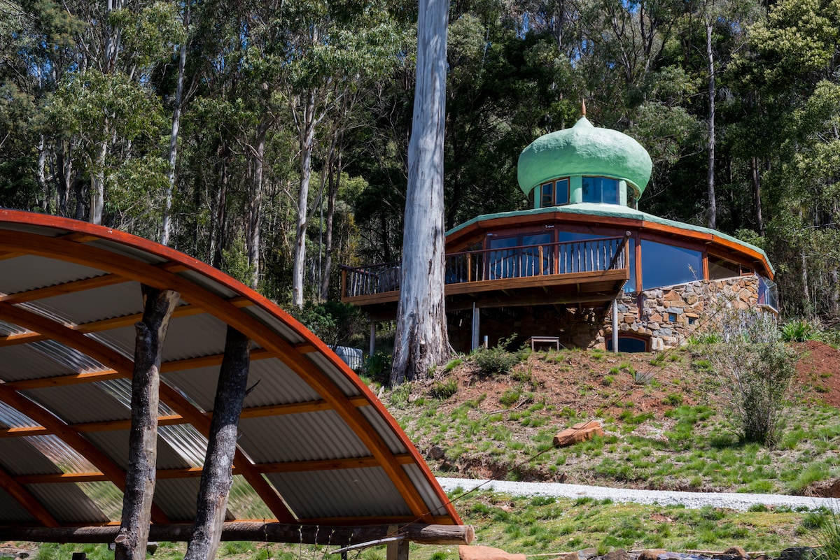 The Roundhouse is located in a place of spectacular beauty, with views of Quamby Bluff and the Great Western Tiers on all sides. The property is surrounded by World Heritage Rainforest which is a result of the protracted Jackeys Marsh Forest Protests. The fresh air, crystal clear water, abundant wildlife and pristine environment are all environmental values prized by the people of Jackeys Marsh. We would now like to share our unique heritage with the rest of the world.