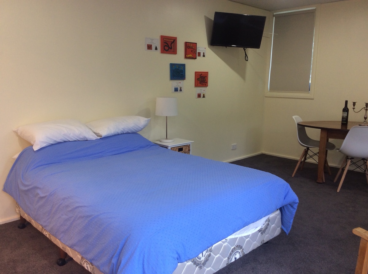 Studio apartment (bed, couch, kitchen in same space) adjoined to residence (separated by shared outdoor living space Free wifi + secure garage Check in from 6pm due to cleaner avail - most cases the room is available earlier & we will send details when ready. Check out 1pm! Walking distance to shops + bus stops, conveniently located for events at the Silverdome. Only 6min drive to the cbd Couch folds out to bed (dbl), port-a-cot/toddler mattress also available Basic breakfast provided