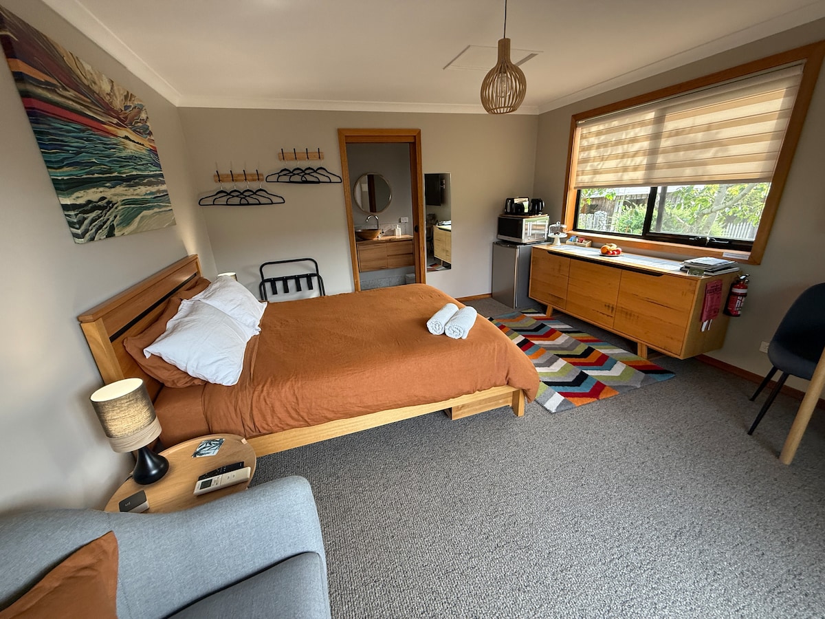 Guest accommodation includes large bedroom, ensuite, and living area that opens up onto a private veranda with views of garden and pond. It is located close to amazing Tasmanian wineries and restaurants as well as the Gorge and Wet-Land board walks only a ten minute drive away. You’ll love my place because of the quiet yet close to town location, amazing garden views, vibrant and friendly host and the offer of an optional remedial massage by a professionally trained therapist. Wifi available