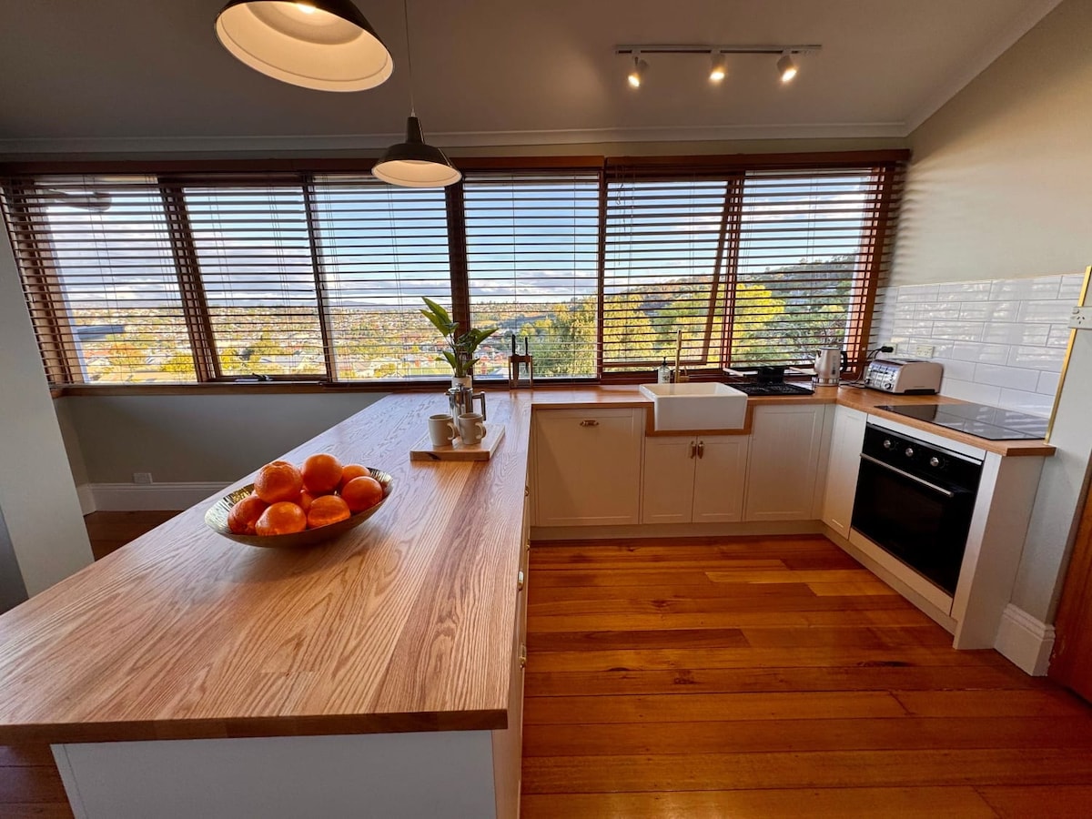 Comfort and character await your Tassie escape in this peaceful residential street. Easy access to the airport, only a short drive to the iconic Cataract Gorge or a short stroll to the CBD and Launceston General Hospital. Private garden views and panoramic vista to Ben Lomond. A peaceful nights sleep awaits you in this comfy king with fresh quality linen. Adding to the homes charm are high ceilings with spacious lounge and cosy gas log fire place. A long time favourite for guests.