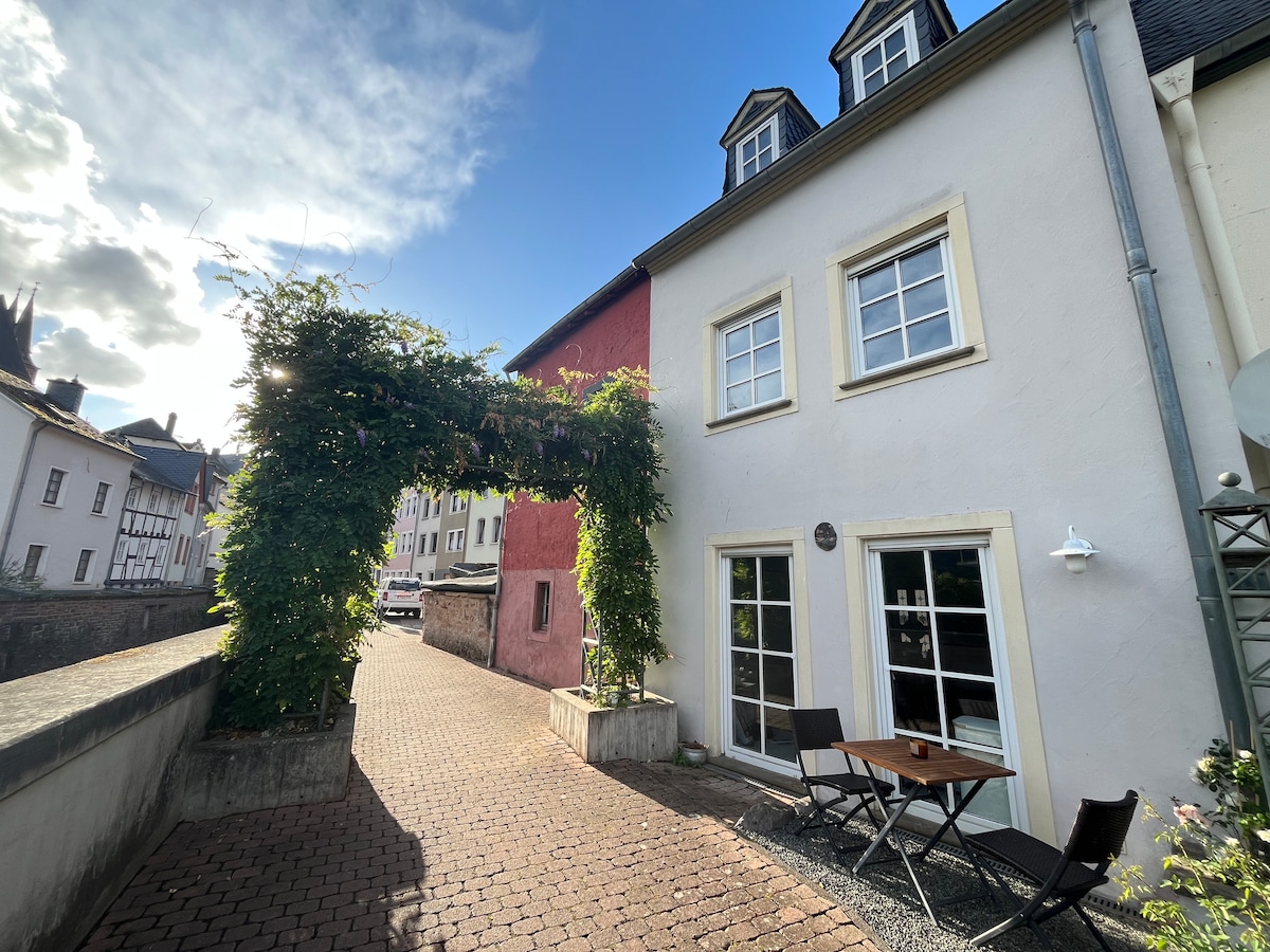 Situated where the three countries Germany / Luxembourg / France meet. This spacious and quiet apartment with its private entrance through the garden, is surrounded by a rose hedge. The altitude of the small town of Kastel-Staadt offers a magnificent view of the surroundings. Small library, fireplace and parquet provide comfort. The hiking trail 'Kasteler Felsenpfad' starts almost at the doorstep. Good gastronomy in easy reach? Restaurant St.Erasmus in TRASSEM (ca. 4 km).