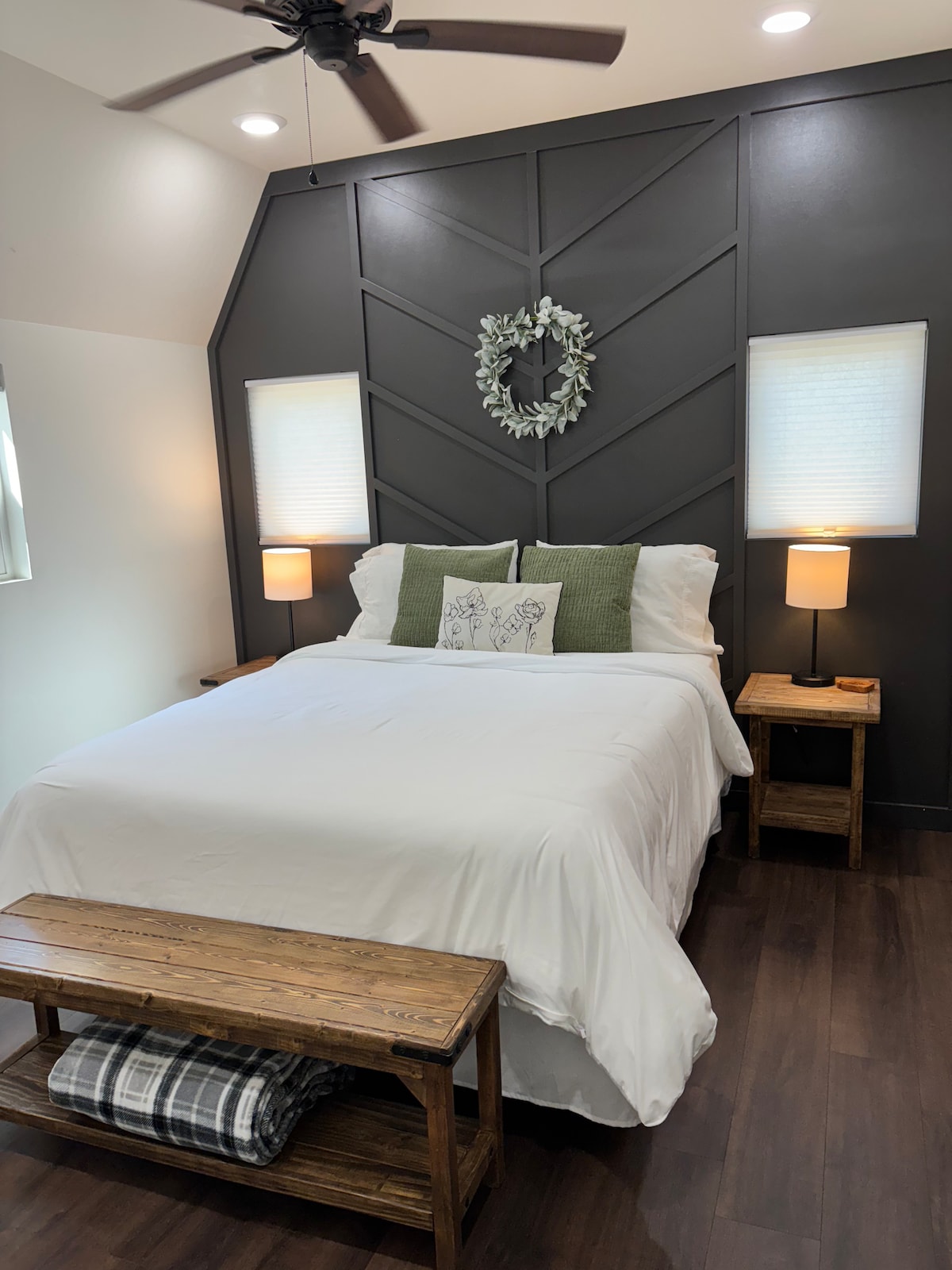 Welcome to our 1930 Artsy Suite, a unique retreat blending, luxury, comfort, and art. Enjoy the original clawfoot tub, custom Stern & Foster mattress, and private porch with serene garden views. Surrounded by one-of-a-kind artworks, this dog-friendly suite features a fully fenced yard for your furry friends. Private entrance, a laundry room, and a focus on comfort and relaxation, As seen on HGTV Hometown season 6 episode 2. Our space offers a truly unforgettable stay.