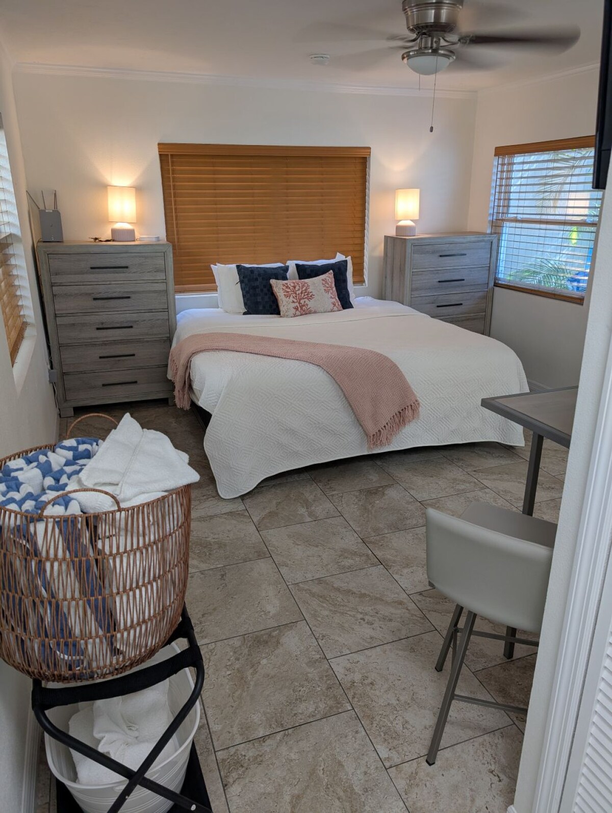 Palm Tree Villas offers a portfolio of eight unique 1950's resort rooms ranging from small studios to three bedroom villas with three bathrooms. We would love to host you for a wonderful quaint island getaway vacation. Conveniently close to the trolley line for a quick bite at many great eating spots around the island and close enough to walk to the beach in a few minutes. Park your car and enjoy the island. This offering is an extremely private popular studio.
