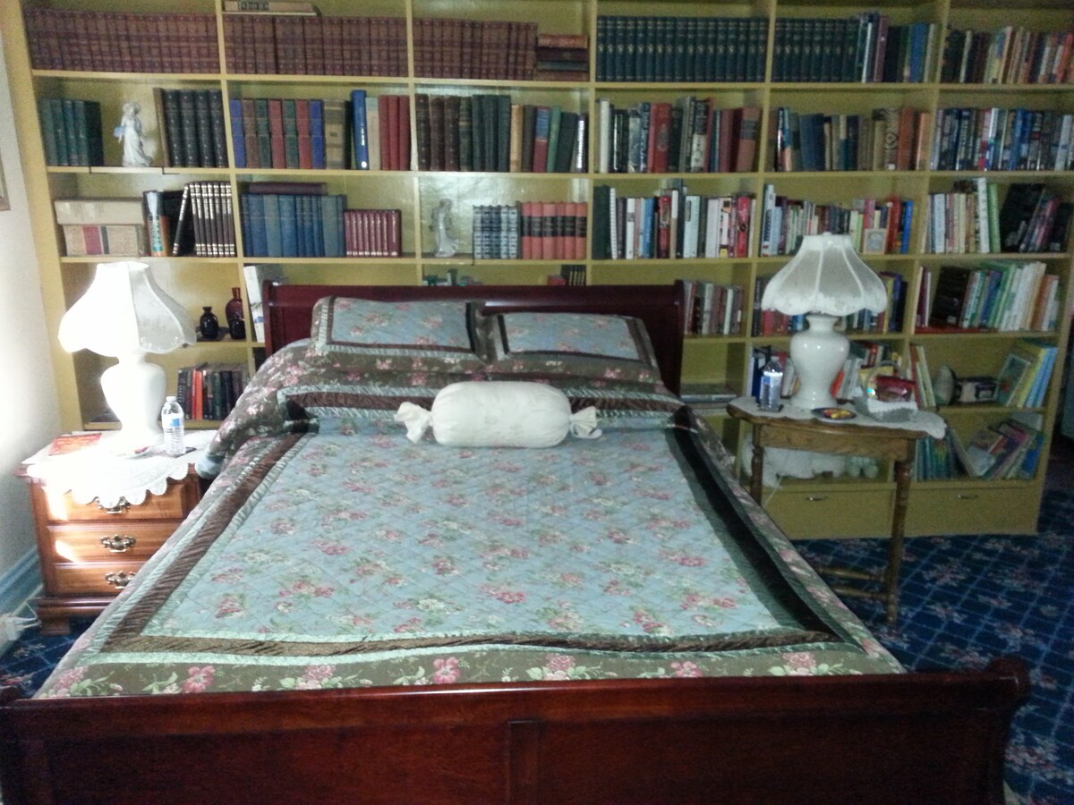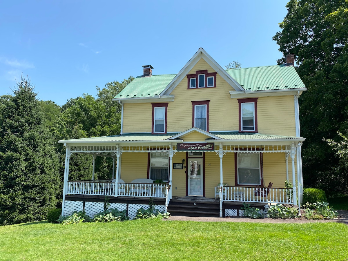 Spacious and bright, this beautifully restored and updated third floor bedroom includes a comfortable single bed. Although the room is small, a study desk with an antique chair is available for writing or study. A lovely slipper chair, with its back pillow, is perfect for reading. Accommodations include off-street parking as well as a beautiful park-like setting with perennial gardens, pond and outdoor seating.