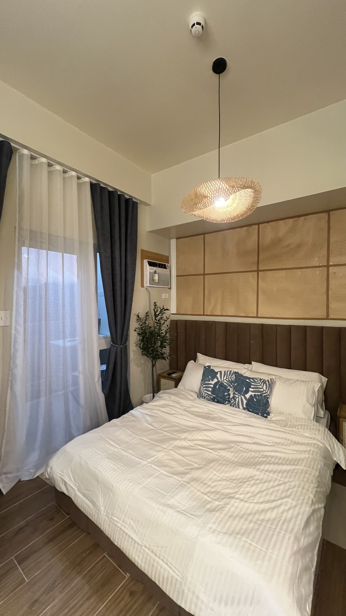 This minimalist Muji-inspired unit feature a serene and functional design, focusing on simplicity and comfort. The space is characterized by neutral tones like white, beige, and soft greys, with natural wood accents for warmth. This is the perfect place if you want a retreat from the fast pace of daily life!