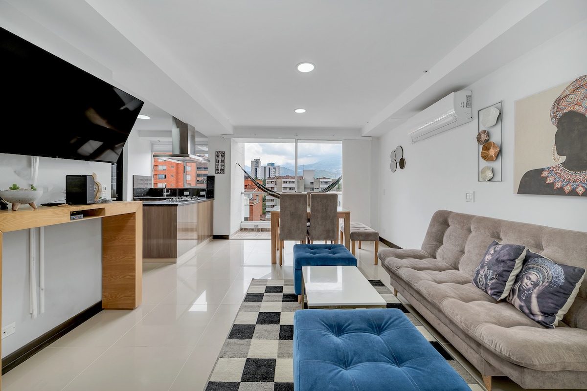 位于埃尔波布拉多(El Poblado)的美丽阳台公寓,配备空调