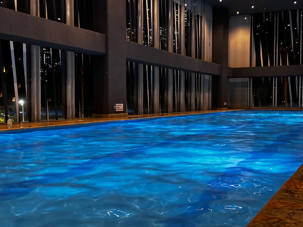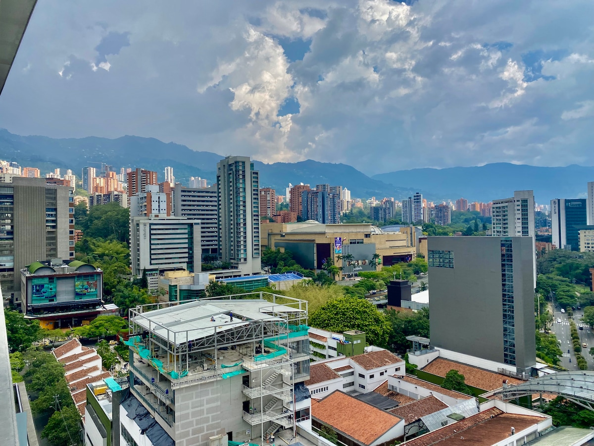 Experience Medellín from above in this luxury 1 BD apartment on the 24th floor, with premium finishes, skyline views, and total comfort. Enjoy a private Hot Tub, spacious living area, fully equipped kitchen and 5 stars amenities. -Private Hot bath tub -AC -Blackout remote control -High Speed Wi‑Fi/800MBs -Pool+Jacuzzi+Turkish bath -FREE in-unit washer/dryer -On-site restaurant & SPA -Full gym 24/7 -Workspace -FREE co‑working space -24/7 lobby & security -No Airbnb fees