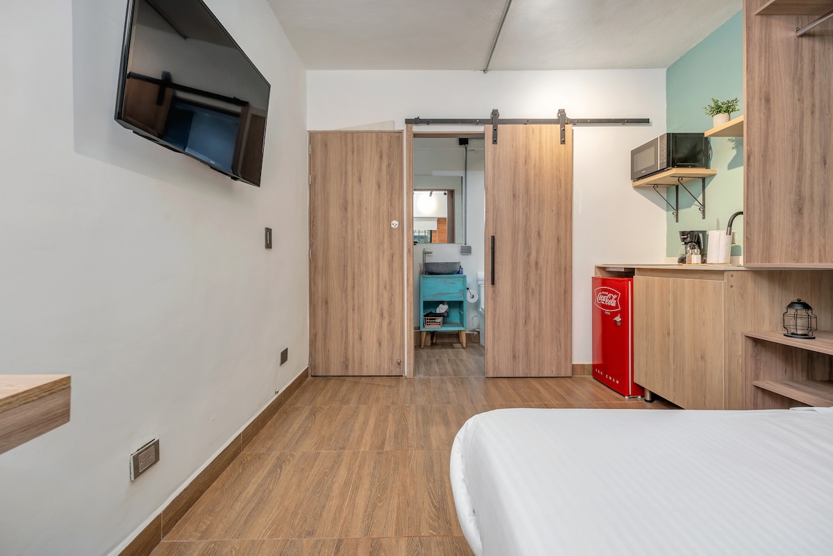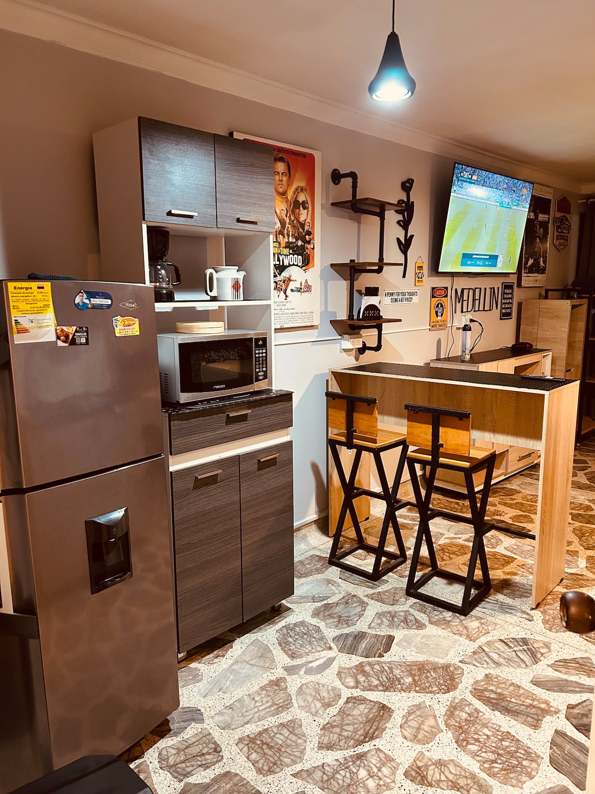 • Ultra High speed 400 Mb WiFi, Fiber Optic • Right in Laureles Heart, the best neighborhood of the city. Walking distance to best restaurants, supermarkets, cafes, parks. All delivery apps work 24/7. • Extremely safe neighborhood • Air Conditioning • Transparent prices: No cleaning or service fee • Fully equipped kitchen • Contactless self check-in with access code • Smart TV with Netflix • Strictly cleaned+sanitized • NOTES: Small, cozy studio. It used to be a garage. Low ceiling in the toilet