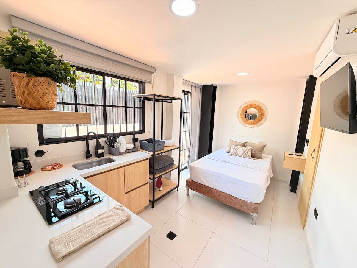 !Descubre el encanto urbano en nuestro acogedor apartaestudio de diseño contemporáneo.Ubicado en el tercer piso, este espacio vanguardista es ideal para parejas y aventureros solitarios. Disfruta de una ubicación privilegiada a pasos de la avenida San Juan,rodeado por la emoción del estadio Atanasio Girardot y el vibrante Boulevard de la 70. Con acceso rápido al Metro,transporte público,este punto de partida te conecta con los tesoros turísticos de la ciudad.aqui encontrarás tu refugio perfecto!