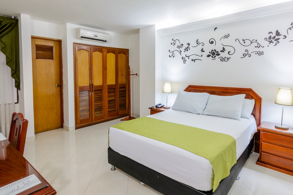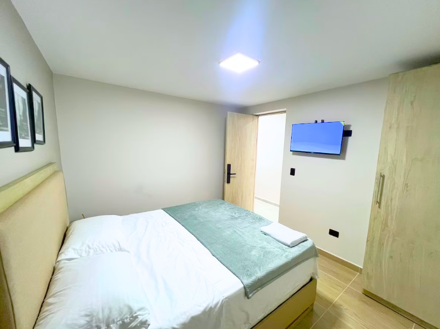 "New fully furnished room, 160x190 pillow-top mattress, very comfortable, 55-inch TV. It is perfect for couples and especially for business travelers. Spacious desk for a workspace with LAN internet connection of up to 200MB. The place is very quiet, with easy access to the metro and close to many points of interest such as Atanasio Girardot Stadium, Boulevard La 70, and universities."