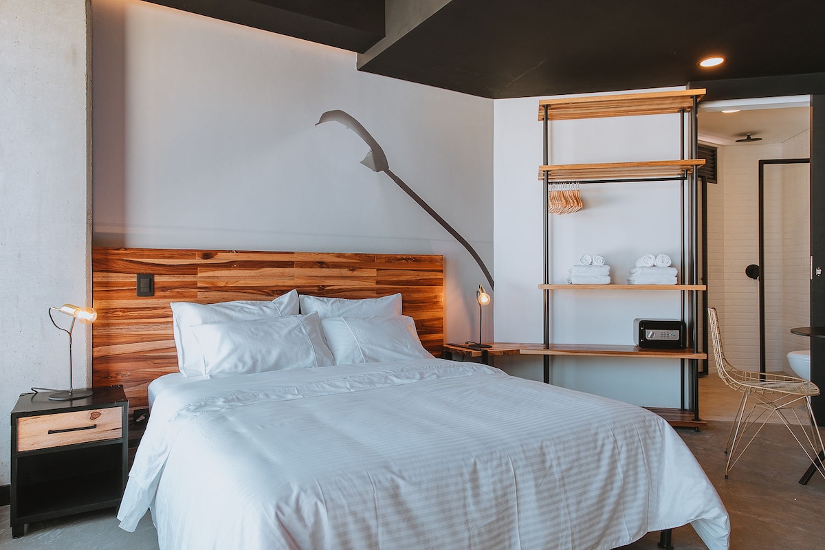 Welcome to your modern top-floor studio in trendy Laureles! Enjoy chic design, relaxing comfort, and a 5-minute walk to top dining and nightlife. This retreat includes 1.5 baths, full kitchen, A/C, in-unit washer/dryer, private + guest parking. Relax with fast fiber internet, Smart TV, and city views from your private balcony. With 24-hour security and spotless standards, peace of mind is assured. Perfect for digital nomads discover the best of Medellín in style and comfort.