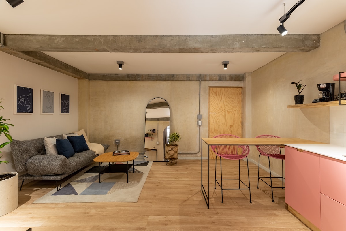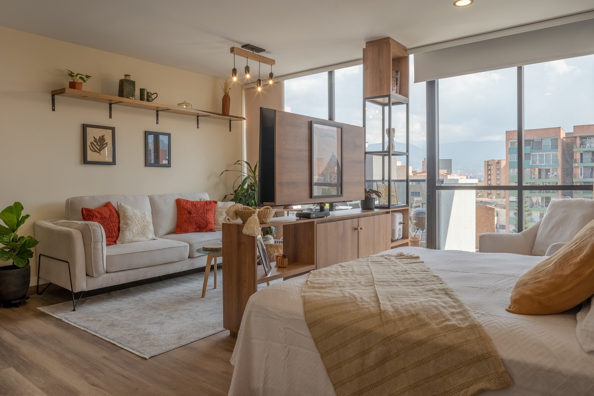 平均评分 5 分(满分 5 分),共 21 条评价位于劳雷莱斯(Laureles)的舒适时尚Loft,配备沙发床和空调
