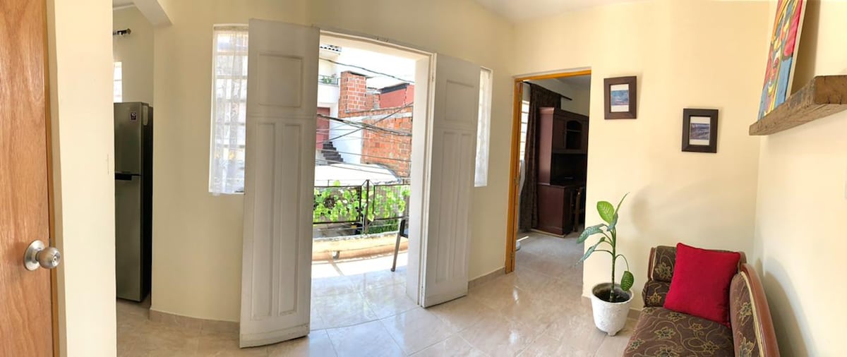 Hermoso aparta estudio en el sector del Estadio, excelente ubicación, ingreso independiente. Con espacio para trabajar (opcional), estacionamiento externo, se aceptan mascotas, cerca a estación del Metro, excelentes vías de acceso, capacidad para dos personas y una adicional, una cama Queen, un sofá-cama, baño con ducha; cocina integral a gas, vajilla y utensilios, nevera y microondas. Televisión, internet de 560 Megas (Varía según dispositivo), lavadora, patio de ropas.