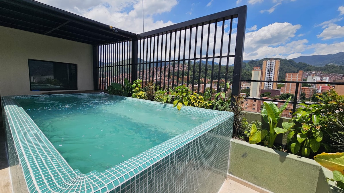 Pet-friendly penthouse designed for digital nomads and long-stay international guests. Located on the top floor, it offers stunning 180° panoramic views of Medellín and the mountains, abundant natural light, and a calm, private environment ideal for remote work. Features high-speed internet, a dedicated workspace, and spacious living areas in a secure residential building—perfect for professionals seeking comfort, productivity, and an elevated stay.