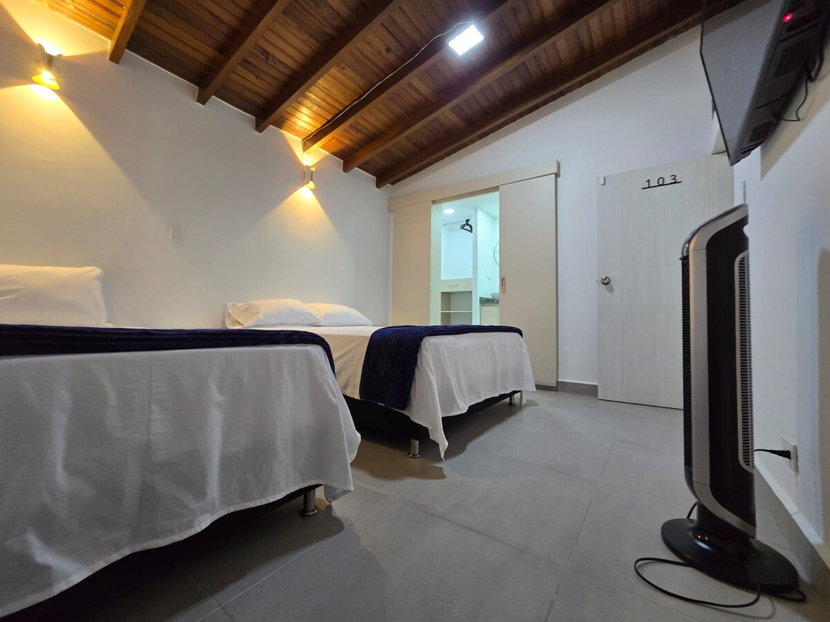 ¡Ubicación premium junto al Estadio! Habitación (103) impecable para 3 personas con BAÑO PRIVADO en el silencioso barrio Velódromo. A 1 min del Metro Floresta y 5 del Estadio. Disfruta de cama doble y de cama sencilla en un ambiente de descanso, sin ruido urbano. Incluye Wi-Fi 900 Mbps FO, TV con streaming y puesto de trabajo ergonómico. Todo a pasos: restaurante diagonal, D1 y mercados. Parqueo gratuito en calle frente a la casa. Ideal para grupos: ¡tenemos más habitaciones en la propiedad! .