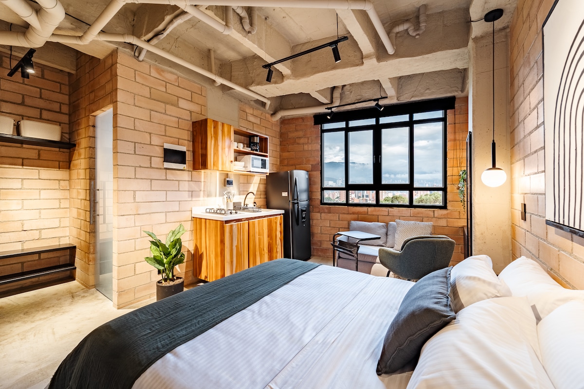 Experience Medellín from this stylish and inviting duplex with a modern urban feel. The bedroom is on the lower level, while the living room, kitchen, and bathroom are upstairs with a comfortable flow between spaces. Street-facing windows fill the home with natural light and fresh air. Located in a walkable, vibrant neighborhood with easy access to public transportation, cafés, supermarkets, and restaurants. High-speed internet makes it ideal for remote work and city explorers alike.