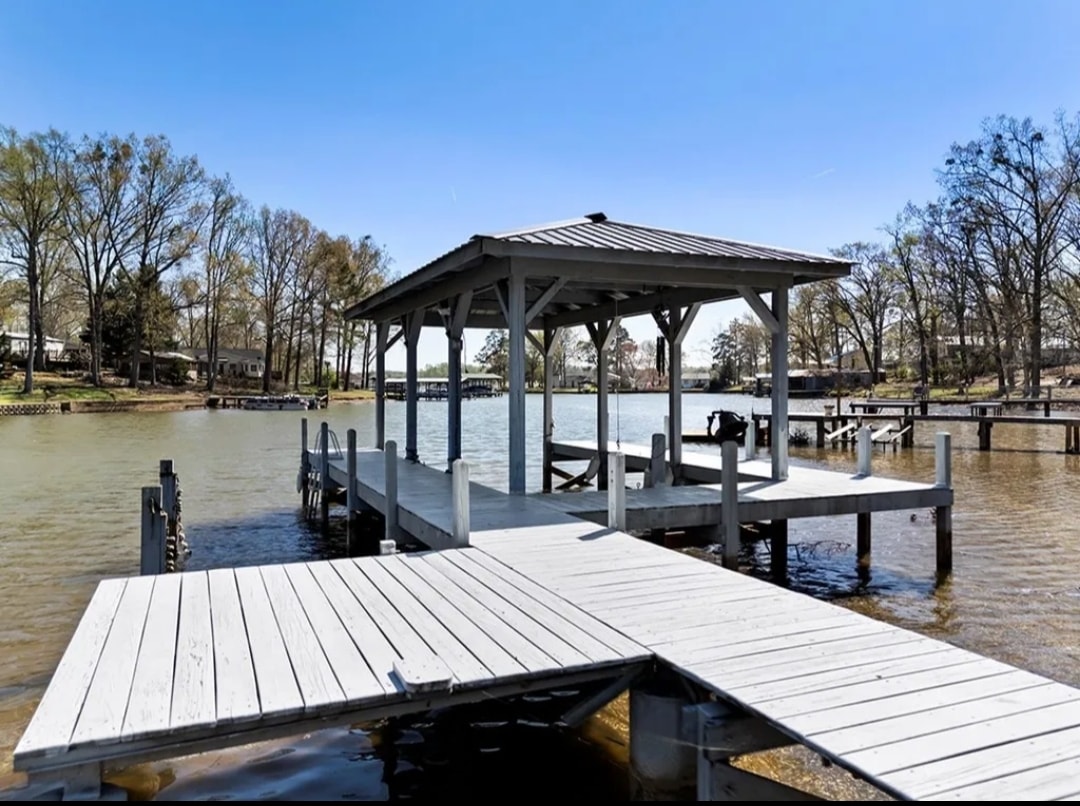 Relax at this charming lakefront cottage with a private covered dock, just 1.4 miles from the public boat ramp. Enjoy easy access to the water from a rare flat lot with an expansive deck and covered porch for outdoor dining and stunning views. Inside, the cozy 830 sq ft space features 2 bedrooms, 1 bath, and modern amenities like WiFi, Smart TV, stocked kitchen, coffee maker, dishwasher, washer/dryer, and gas grill. Perfect for swimming, fishing, and boating. Book your getaway today!